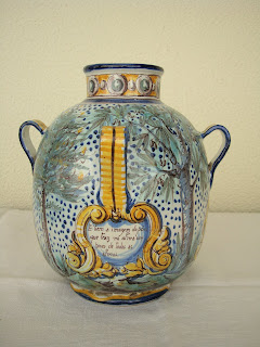 A decoração, nos tons Imari - azul, vermelho ferro e dourados - apresenta uma certa influência oriental, com aves exóticas misturadas com flores e ramagens, igualmente exóticas, que me parecem do tipo hibiscus.