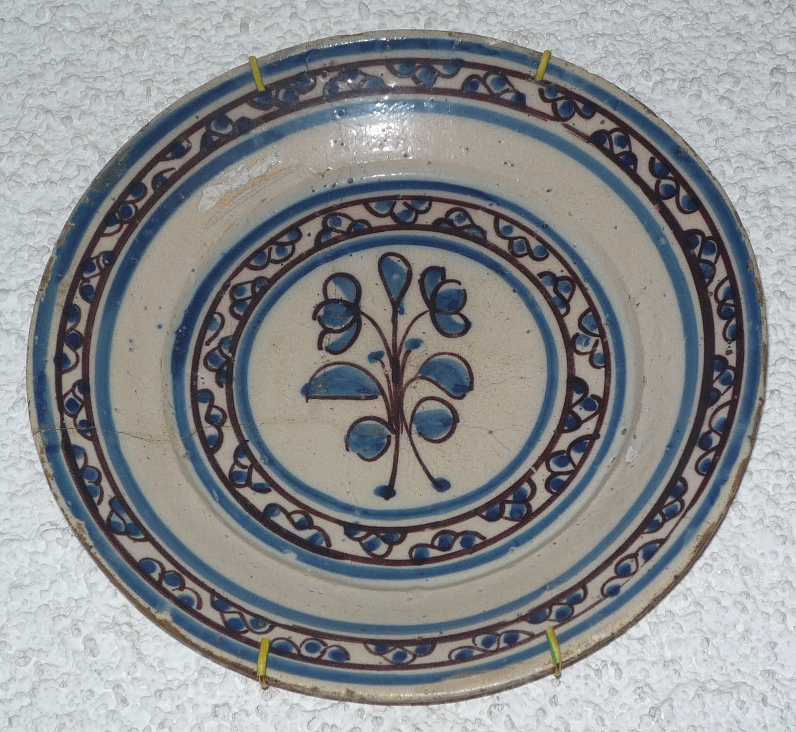 O número de padrão que se pode ver quer na chávena quer no pires, o 586, é um número baixo que aponta para um fabrico bastante recuado, já que estes números chegaram aos milhares a meados de mil e oitocentos. Alguns fabricantes usaram prefixos de letras, mas não me parece ser esse o caso do K antes do número 586 na primeira chávena, parece-me mais uma marca de pintor.