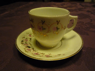 Esta não é das mais espectaculares, já que tem um padrão decorativo discreto, chamado Lemon Flower, obtido pelo processo de transfer printing, o mais usado nesta época, séc. XIX. Muitas são todas decoradas com as belas paisagens bucólicas, cenas de caça, os castelos em ruínas, cenas marinhas, enfim , todos os motivos que bem conhecemos da faiança inglesa azul e branca.