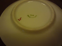 No verso estão duas marcas, a que se vê acima, impressa com o nome do padrão e as iniciais do fabricante, J C & Cº, e outra gravada na pasta, uma âncora e a palavra London, que não consegui que ficasse legível numa fotografia. Está no meio da zona central do verso da travessa, como ainda se consegue discernir na segunda foto. As iniciais J C são do fabricante John Carr, estabelecido em North Shields, Northumberland. Não se trata, portanto de uma das muitas unidades de Staffordshire, embora este fabricante, como aliás vários outros de fora do condado de Staffordshire, tenha utilizado, não nesta travessa, mas em outros dos seus produtos, a marca Warranted Staffordshire, isto é, produto garantido de Staffordshire, para aproveitar o prestígio que aquela grande zona oleira tinha alcançado dentro e fora de portas.