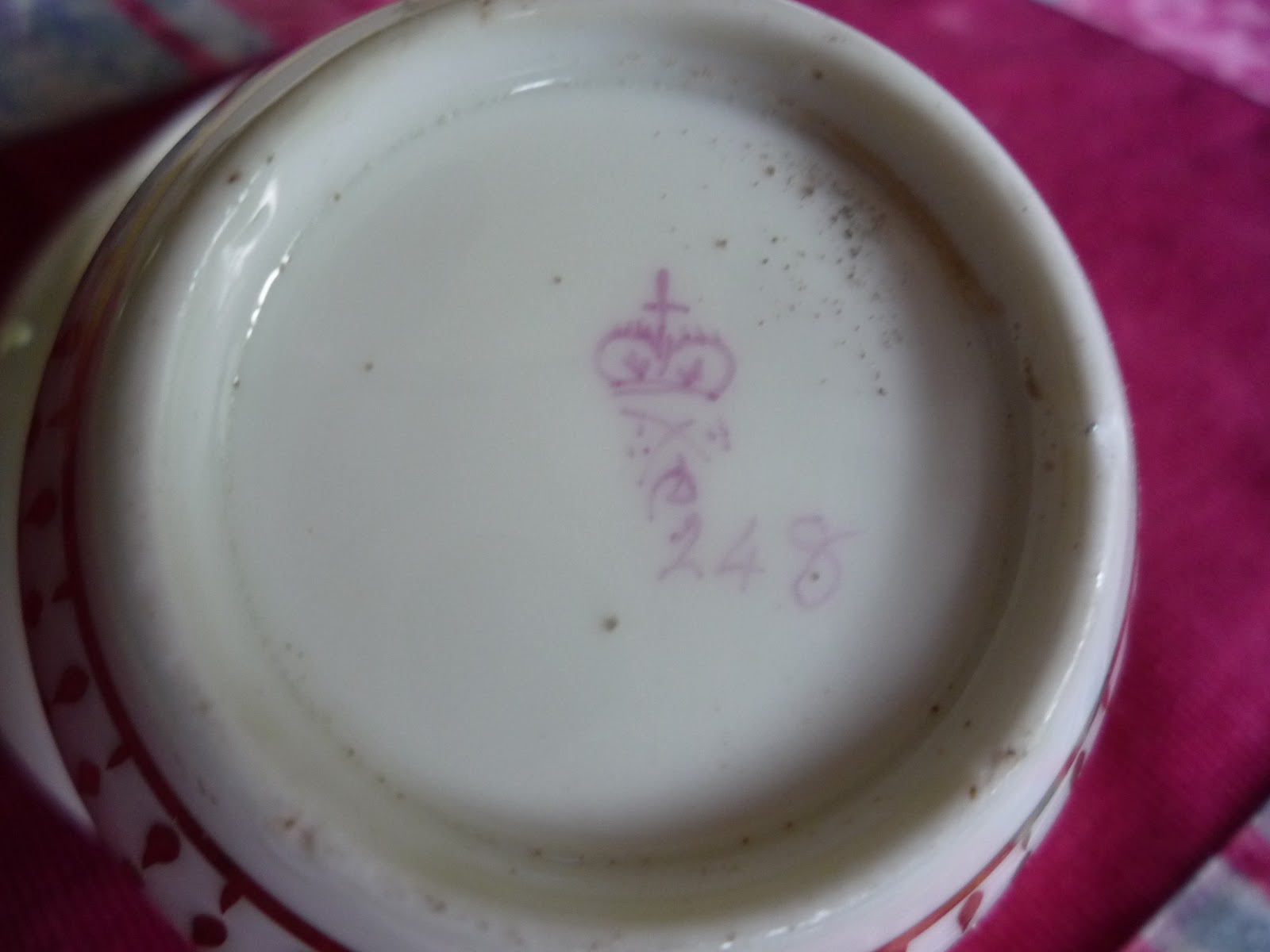 Os livros de padrões ou pattern books, muito utilizados pelas mais conceituadas fábricas de cerâmica inglesas, tendo cumprido a sua função à época, que era a de registar formas e desenhos e facilitar novas encomendas, são hoje auxiliares preciosos para identificar e datar exemplares sem marca. Acontece em muitas peças inglesas antigas terem como única marca o número de padrão, inteiro ou fraccionário, escrito à mão de forma mais ou menos cuidada, em dourado ou em várias cores, sobretudo vermelho. São esses pormenores de cada  número que ajudam a identificar e a datar a peça. Mas mesmo existindo a marca da fábrica, como é o caso das minhas chávenas, servem para datar muitos exemplares de fabricantes que mantiveram a mesma marca durante décadas. Estes livros encontram-se geralmente nos arquivos de cada unidade fabril, no caso das ainda existentes, ou em museus e colecções de cerâmica, felizmente abundantes em Inglaterra.